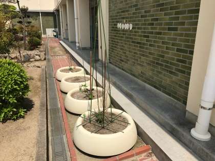 廊下の外には「ひまわり農園」があり、野菜が育っています。