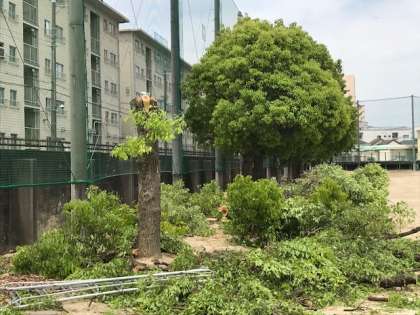 ちょっとすっきりさせたいので、今日から15日(金)まで、校園営繕園芸事務所の方に来ていただいて樹木の剪定(せんてい)・集枝・伐採(ばっさい)などの作業をしていただきます。