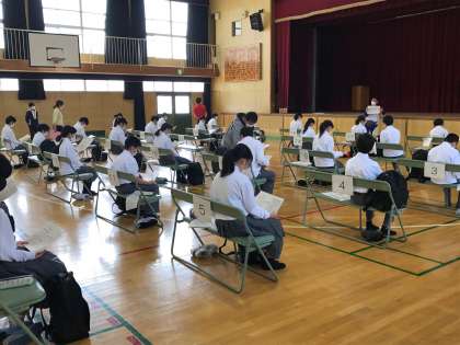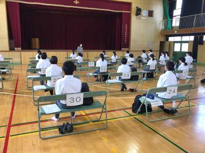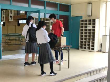 今日は1年の登校日、学級別の分時間差散登校で実施しています。