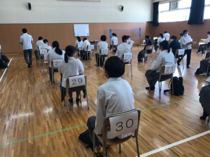 武道場で3年1組が活動しています。