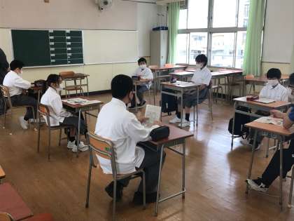 こんな活動を今日はすべての班にやってもらおうという企画でしたが、不審者情報が入ったので、1年の登校日はB班までにして、残りのC班以降は中止(延期)にしました。