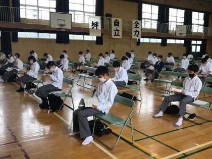学年だよりを読みながら、次の登校日の説明を聞いています。