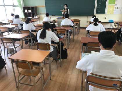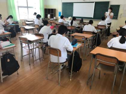 「読む」「話す」という活動が飛沫感染防止のため、大きな声が出せない状況ですが、その分しっかり「聞く」「読む」活動をがんばってほしいと思います。