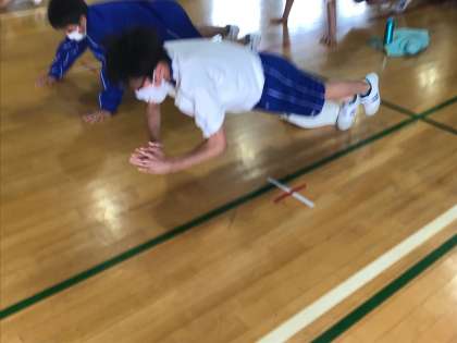 男子の腕立て伏せは最後に腕を跳ね上げ、空中で手をたたく、という高等技術です。