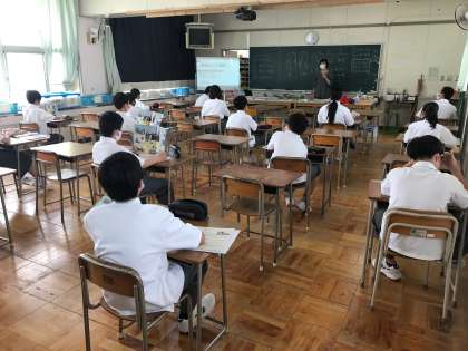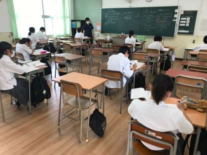 黒板にいっぱい回答が書いてあって、みんな真剣に問題と向き合っています。