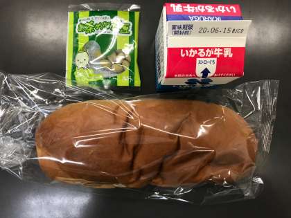 今日のメニューは「牛乳 黒糖パン まっ茶大豆」の3品です。