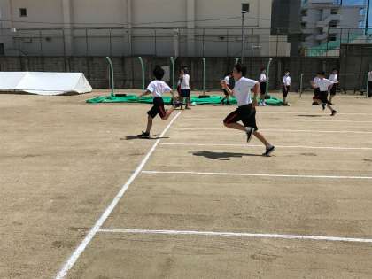 天候晴れ、風もほとんどない、という50m走の測定には最高のコンディションです。
