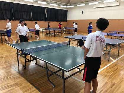 武道場で卓球部が練習しています。