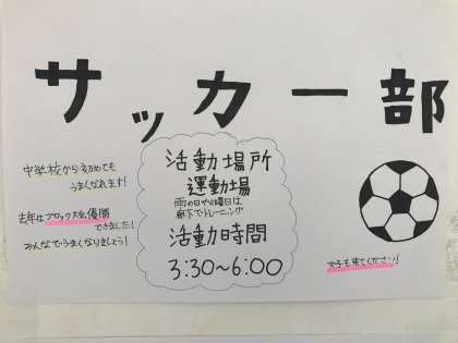 サッカー部、新入部員募集中です。初心者でも大丈夫です。