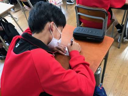 1年3組もそれぞれが1枚の紙に何か書いています。