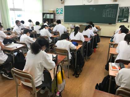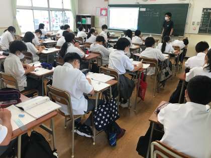 コンセンサス(合意形成)ゲームと言って、自分の意見を述べつつ人の意見も取り入れ、班としての意見を考えるのが課題です。今、自分の意見をまとめています。