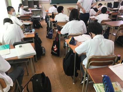明日のテストは「国語・社会・音楽(1年)/技家(2年)/美術(3年)」の3科目です。