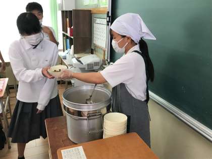 1学期最後の給食メニューは「豚肉の生姜焼き・ご飯・みそ汁・牛乳」の4品です。