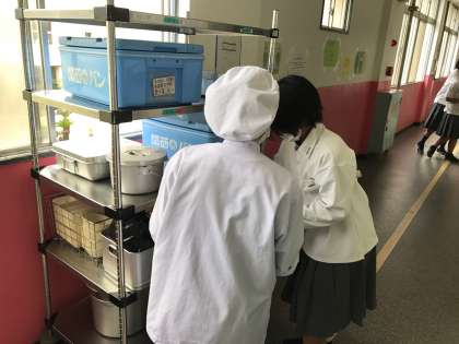 写真下) 食器かごなどすべて戻して給食終了です。