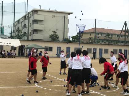 玉入れは各クラス前半と後半の2チームに分かれ、それぞれ2回競技します。