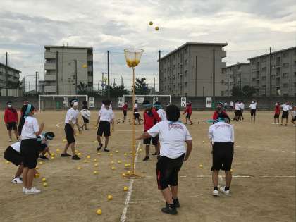 軽く上に投げてほぼ垂直にかごに入るのが理想です。