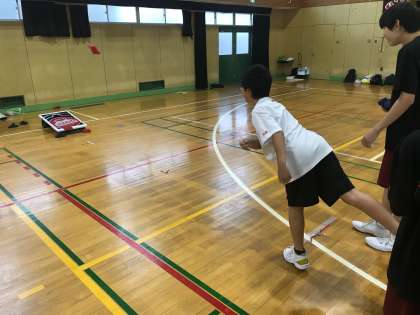今日も大阪府レクリエーション協会から講師に来ていただいていろんなニュースポーツにチャレンジしました。
