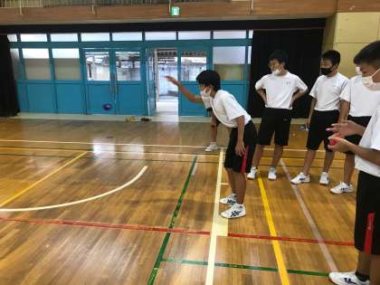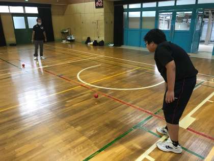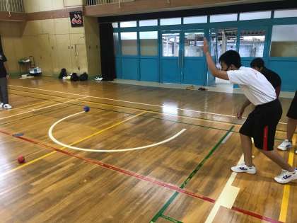 的の白いボールに2チームでボールを投げ合い、最も近くになったボールのチームが勝ちです。