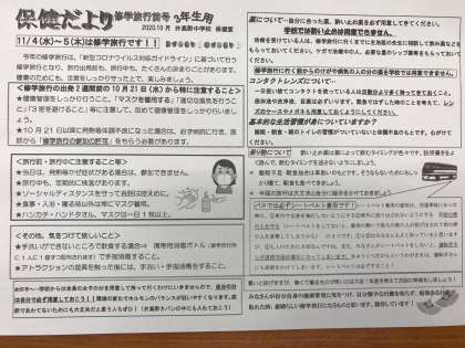 10/14 保健だより 3年生限定 修学旅行前号を発行しました。
