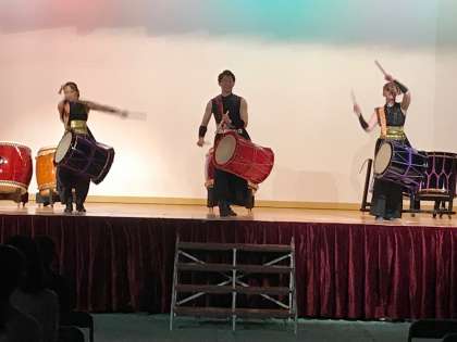 今日の芸術鑑賞は「和太鼓ユニット Nico」さんに来ていただいての和太鼓演奏です。