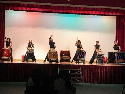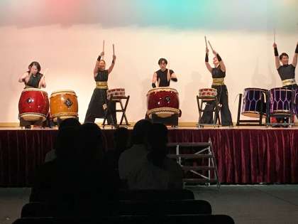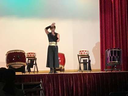 お兄さんのMCで、太鼓のことについてクイズ形式でいろいろ教えてもらいました。