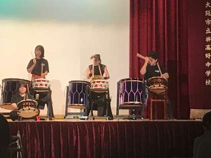 続いて、本校和太鼓部とNicoさんのメンバーとのコラボ演奏です。