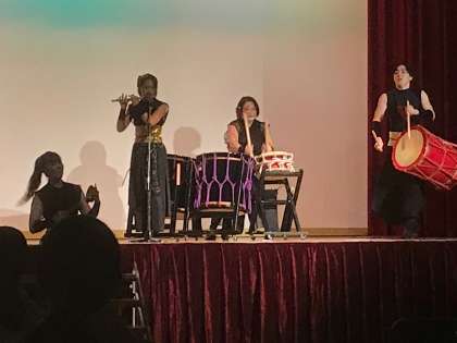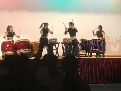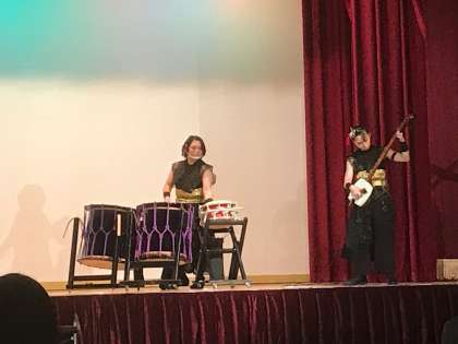 横笛、鉦(かね)、三味線(しゃみせん)、観客の手拍子も入ってダイナミックです。
