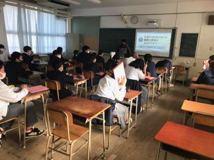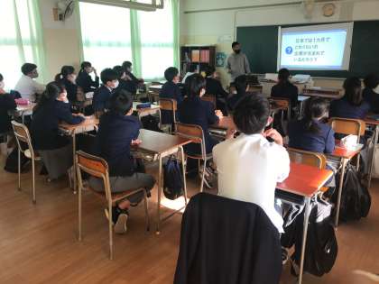 仕事についてのクイズに答えながら考えを深めてもらっています。