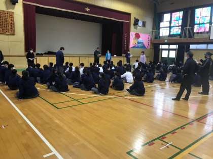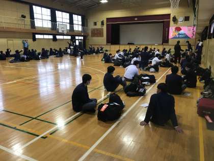 荷物確認や各活動時の並び方とメンバー確認しています。