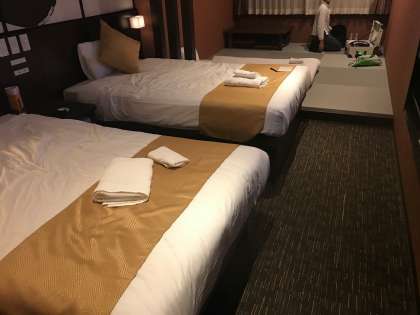 大きめのベッドです。3人目の人は奥の畳の間で寝てもらいます。