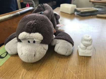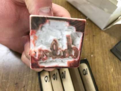 普通のハンコは立方体のままですが、美術ですので、持ち手の部分も彫ります。