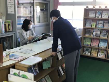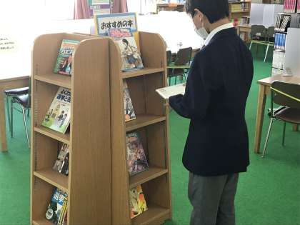 図書館補助員さん特製のポスターに誘われて図書室に行きました。
