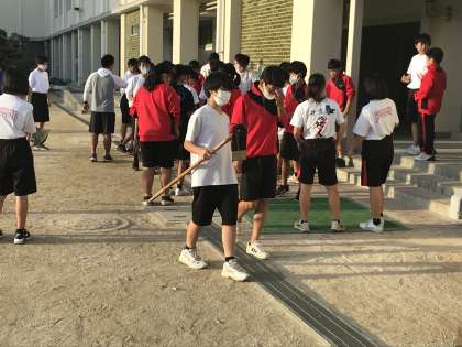 今日は6時間目がないので、運動場で活動する部が速攻で側溝の掃除をしてくれました。