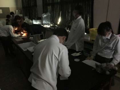 光の屈折の学習で実際に屈折のようすを見ているものと思われます。