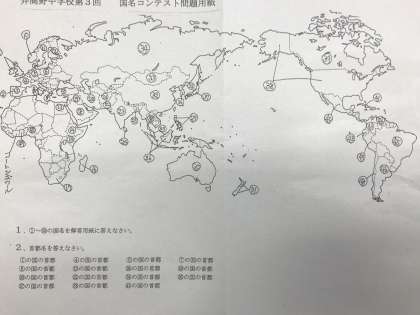 地図上の国名をこたえる問題が50問、その中の国の首都名をこたえる問題が15問です。