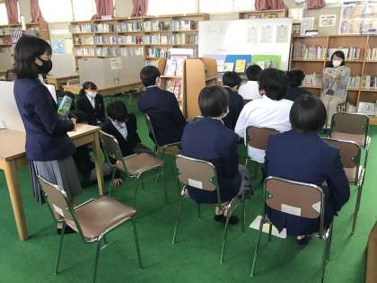 今回は、図書館補助員の先生が、星新一の「ある研究」を朗読してくださいました。