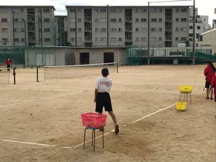 テニスコートから女子ソフトテニス部の声とボールを打つ音が聞こえてきます。