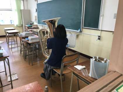 4階の各教室で吹奏楽部が練習しています。