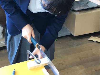 木材を鋸(のこぎり)でいい具合の大きさに切って、鑢(やすり)をかけます。