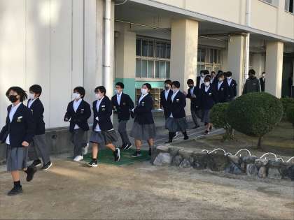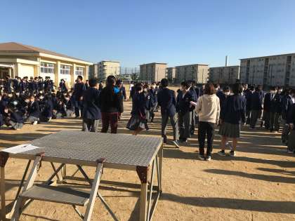 運動場への避難指示から集合・点呼完了まで3分と非常に迅速に行動できていました。