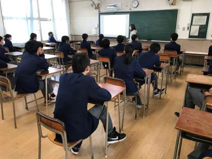 教室に戻ってパワーポイントを使った防災学習です。