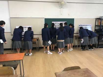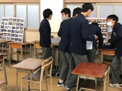 1カ月前に行った修学旅行で写真屋さんが撮影してくれた写真のサンプルをみんなで見ました。