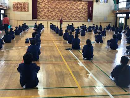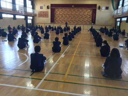毎週水曜日に行う1年学年集会、今年最後バージョンです。