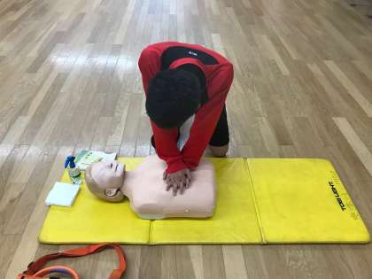 意識がなく、呼吸も止まっている人が道で倒れている想定です。