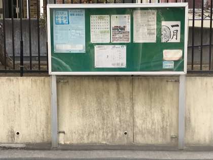 地域の皆さんにも学校のようすを知っていただこうと、校門横にPTA新聞やいた中だよりなどを掲示しています。