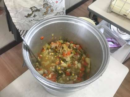 今日のメニューは「鯵(あじ)のレモンマリネ・てぼ豆のスープ煮・固形チーズ・コッペパン(マーマレードを添えて)・牛乳」の5品です。