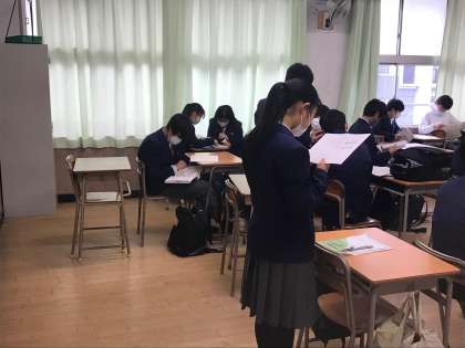 6時間目に保健体育の3年学年末テストを実施しました。
