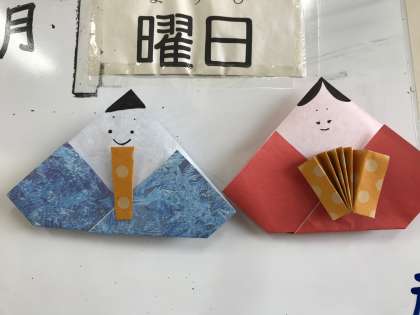 節分が終わったので、ひまわり学級の季節の飾りがお雛様になりました。