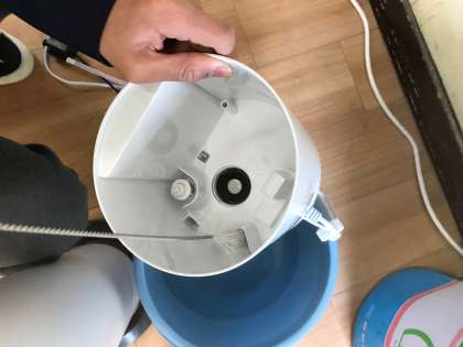 残っている水を捨てて、専用ブラシでフィルターに付着している汚れを落とします。