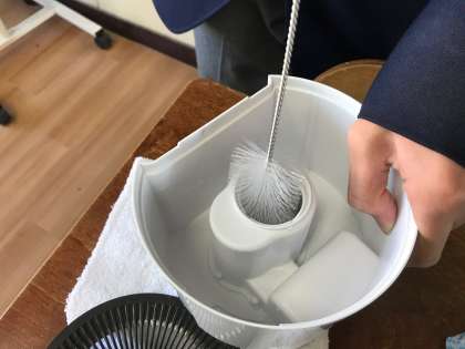 衛生委員会は手洗い石鹸・消毒液の補充やこの加湿器のメンテナンス・給水など地味ですが、とても大切な仕事をしてくれています。